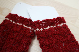 Sekä ala- että yläreunassa ja peukalossa on myös pitsiä. Kämmekkäät pääteltiin neulan avulla, englanniksi tekniikan nimi on tubular bind-off ja hyvä ohjevideo on täällä.
